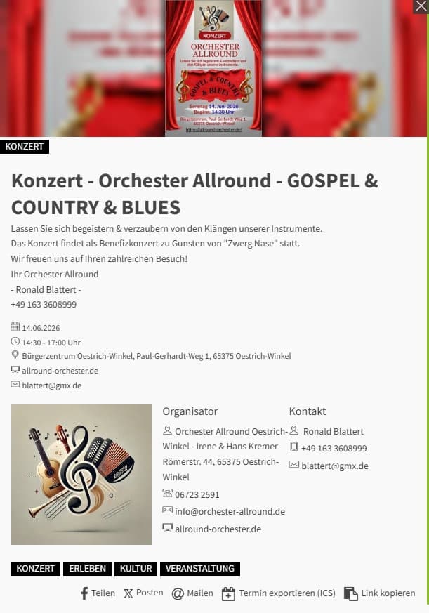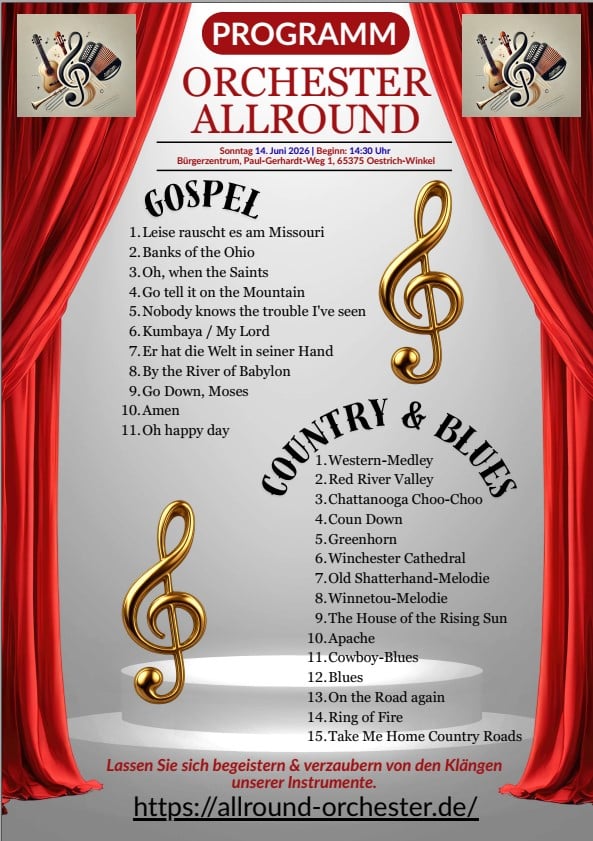 14.06.2026 – Konzert im Bürgerzentrum in Oestrich-Winkel (Ersatz für ausgefallene Konzert im November 2025)